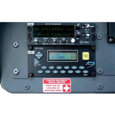 | Blue Sky Network’s Advanced Control Head (ACH1000) aviation transceiver is the perfect tool for pilots, operators, and fleet managers around the globe. Working in conjunction with our D1000-series Iridium transceivers, it is the ideal upgrade to add voice and messaging capability to and from the cockpit. The ACH1000 control head integrates with the on-board intercom system, allowing the pilot or co-pilot to easily dial or receive calls directly through the headset. Users can pre-program up to 10 speed-dial numbers, delay, route diversion and weather requests. The crew can also easily receive and read email messages from the iridium transceiver display. Moreover, with the simple push of a Quick Position (QPOS) button located on the ACH1000 display, a message is quickly sent to the SkyRouter portal, key email addresses, and mobile phones.