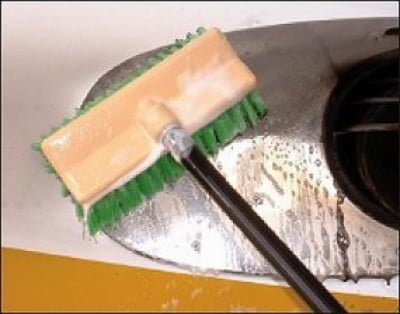 | It is a 10” foam block that is completely filled with a one threaded green nylon. This brush will effectively remove oil, grease, exhaust fumes, and other oily residues. 60” length metal handle not included, order separately. |