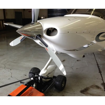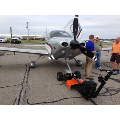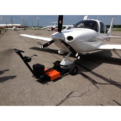 | This quiet electric model makes moving the aircraft a simple task for a single person by lifting the nose-wheel off the ground! Much easier to hookup and control the aircraft than a single wheel tug that is not able to lift the nose wheel off the ground. Simply attach the small towbar by hand to the aircraft and then winch the tow-bar / nose-wheel onto the raised platform for total control by the tug. The NFE-6 model AirTug® is extremely easy to use because of its’ unique “Thumb Throttle” system utilizing an electric transaxle with differential and on board Smart Battery Charger. For your safety, “Return to Brake” feature prevents any unintentional movement of the plane when the thumb throttle is released. There is no metal to metal contact, no gears to shift and no jerky clutching systems to quickly wear out. Its’ pinpoint handling allows the operator to pivot as tight as desired as a result of the differential transmission. All of these features simply make this quiet, aircraft tug a good value in the industry! |