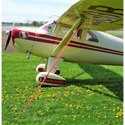 The aviation designed EZ Tie-Down Straps ensure a quick and secure connection between the ground and aircraft. The 9-foot tie-down straps feature industrial strength weather-proof Polyester webbing, single lever locking strap tensioner, heavy-duty vinyl coated aircraft attachment double S-hooks, and cast steel Chrome Plated Tie-Down Clip. The detachable straps can be used on airport ramps without the ground screw offering additional versatility.