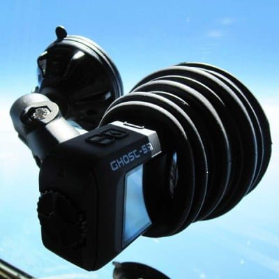 Having the camera mounted inside has many advantages. Shooting through the window has many challenges. A great video is easily wrecked when the T-shirt you are wearing reflects off the glass into your camera. The window reflection hood blocks any reflections and also helps to stabilize the camera when pressed against the glass.