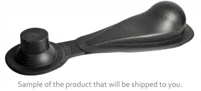Bonehead Composites created this air scoop to allow the hose to be run off the scoop at various angles. Made out of compressed molded carbon fiber and accepts a 1-3/4″ hose, the scoop dimensions are 7.5″ x 3-1/8″, with a 9/16” flat flange for mounting. Included is a cutout template giving you the ability to place the cut in your desired location.