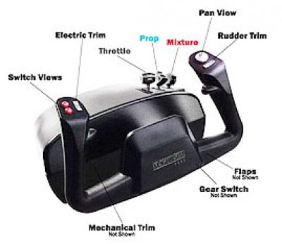 – X and Y axes on realistic yoke grips for Aileron and Elevator control (mechanical trim wheel for physical potentiometer centering only)