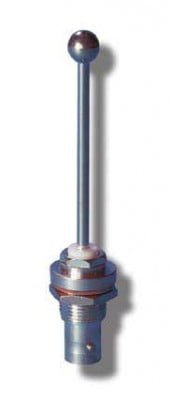 Transponder antenna with top loaded stub monopole. Antenna radiator is mechanically captivated and is machined from solid brass for impact resistance. Contact points are made from beryllium copper. Metallic parts are plated with bright nickel for corrosion protection. Mounts through a single 0.600” diameter mounting hole.