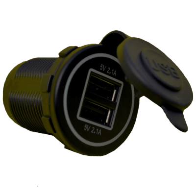 SMART version dual USB 4.2 Amp charging jack autodetects Apple and other brands of phones and tablets for a charge at the maximum rate! Compatible with 12 or 24 Volt DC input, and mounts in a 1-1/8″ hole. Suitable for Experimental aircraft, cars, boats, motorcycle, RV, anywhere you need a charging jack