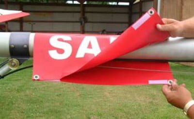 The For Sale prop banner incorporates several features not found on competitive banners that cost twice as much! This banner system consists of three pieces. Each prop banner is 11” high X 22” long when mounted. It is made of RED vinylized polyester with BOLD WHITE lettering. Custom messages available. – FOR RENT; BUY ME!; PRICE REDUCED – Anything! Unlike prop banners that are a sleeve which The For Sale prop banner also comes with a 20” long 4mm Bungee Cord that can be hooked to any of the four corner grommets on the banners to hold the banners in place. The grommets may also be used to hang streamers or additional small signs for higher visibility. |