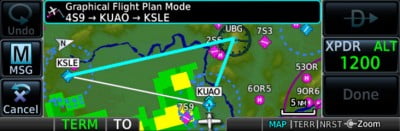 With GNX 375, building and modifying flight plans is simple. As you enter waypoints, Garmin’s FastFind feature automatically begins searching for the nearest identifier as soon as you start typing, so — in most situations — a press or 2 reveals just what you were thinking. You can also create holds, insert Victor airways and corresponding exit options, and add departures, arrivals and instrument approach procedures. Additionally, you can edit your route using the map screen; a handy “rubber band” feature lets you grab any leg of your flight plan route and move it to accommodate a deviation or ATC amendment to your flight plan.