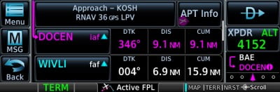 Plus, when operating in VFR conditions, GNX 375 can provide advisory vertical approach guidance based on a published glidepath angle or a 3-degree approach glideslope from the runway threshold, while considering terrain and obstacle clearance. With this advisory guidance, you’re able to fly more consistent, precise vertical glidepaths into a variety of airfields.