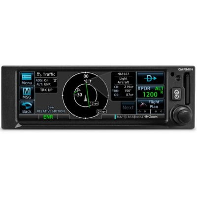 Slim, all-in-one touchscreen GPS navigator and ADS-B transponder for Part 23 Class I/II aircraft (weighing less than 6,000 lbs) and experimental/amateur-built aircraft Take advantage of WAAS GPS navigation with LPV approaches, which offer minimums as low as 200’ to greatly expand your operational capability Built-in 1090 MHz ES transponder meets ADS-B “Out” requirements, while dual-link ADS-B “In” receiver provides a display of traffic and subscription-free weather. Pairs with select Garmin flight displays, or integrates directly with your existing course deviation indicator (CDI) for cost-effective installation¹ Visualize your entire flight plan, including departures, arrivals, instrument approaches, holding patterns and more on a rich, dynamic global moving map Wirelessly transfer flight plans and stream weather, traffic, GPS position and backup attitude via built-in Connext® wireless technology to the Garmin Pilot™ app and more. Note: This unit may only be sold to experimental aircraft. Aircraft Make, Model, and N number will be required at the time of shipment. |