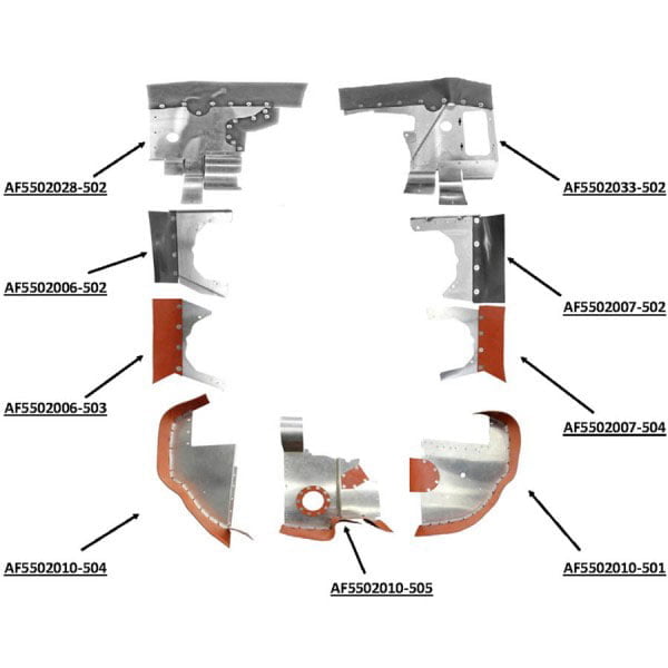 Airforms is the premier manufacturer of FAA-PMA replacement baffle components. Individual components only with Black Seals and no Powder Coating. Note: