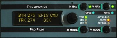 When matched with a Garmin G3X, the GX PRO does not require the Pro Pilot ARINC 429 circuitry normally needed to interface with other EFIS systems. This results in a significant cost savings, yet adds full horizontal (GPSS) and vertical (GPSV) control via serial commands from the G3X.