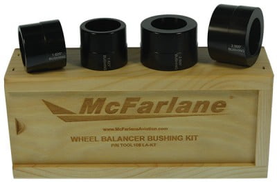 It’s fast and easy! Due to the horizontal balancing orientation, test weights can be temporarily set in place and easily adjusted while balancing. This eliminates the need to tape the test weights. The McFarlane wheel balancers are precision machined with a black, hard anodized finish, and come in an oiled wooden case. This is a lifetime tool that fits almost all light aircraft wheel/tire assemblies.