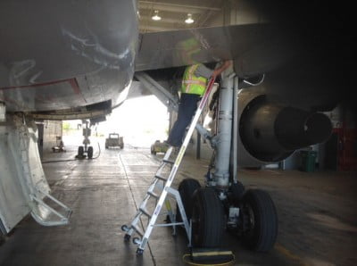 8′ Designed as a free-standing ladder for Airbus A320 and A321 wheel well and gear well areas. 10’Designed as a top-leaning ladder for the Boeing 787 wheel well area. |