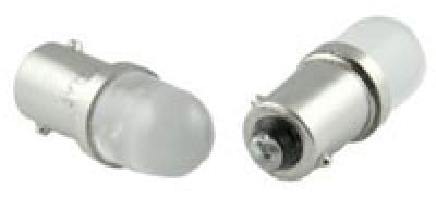 | Miniature Bayonet Based T3 1/4 LED Lamp. A bright LED for direct replacement of Miniature Bayonet Based incandescent lamps. It has a built-in diffuser for wide angle viewing. A molded diffuser lens increases the viewing angle making this LED more suited for use behind larger displays, switches or lens covers. Long-life, low power consumption, shock resistance, and extreme thermal tolerance make LEDs ideal for harsh industrial environments. Available in Clear or Red.