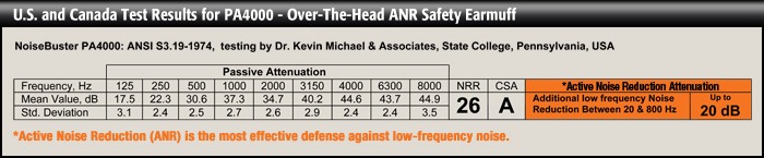 • Passive noise cancellation, 26 NRR, CSA Class A, SLC(80), 29.2 Class 5