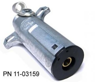 11042 PIPER TYPE PLUG Mates with 11041 socket. Electrical conductors and connections are designed for maximum efficiency and long life. With ground return terminal. Single pole. Brass female contact with spring-grip tension provides solid engagement with the socket. Cable clamp holds wires firmly in place. Diecast housing. Accepts up to 0AWG cable.