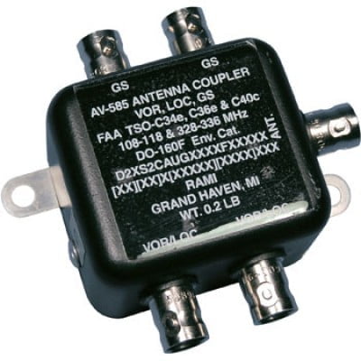 | The AV-585 FAA/TSO antenna is a diplexer/splitter providing (2) VOR/ LOC and (2) GS outputs from one VOR/LOC/GC antenna. It is a direct replacement for the CI 1125.