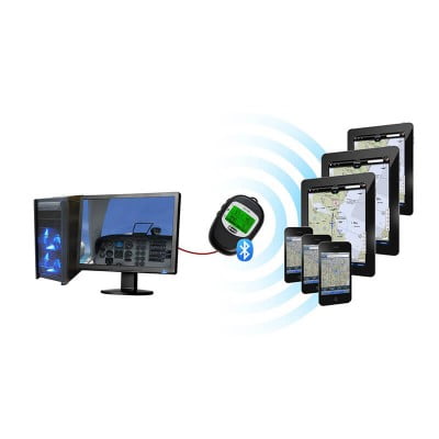 Cygnus Pro Wireless comes with a fully-functioning Bad Elf GPS Pro external Bluetooth wireless GPS receiver, and can be used to feed simulation data to up to 6 Apple iOS devices (iPad, iPhone, iPod touch).
