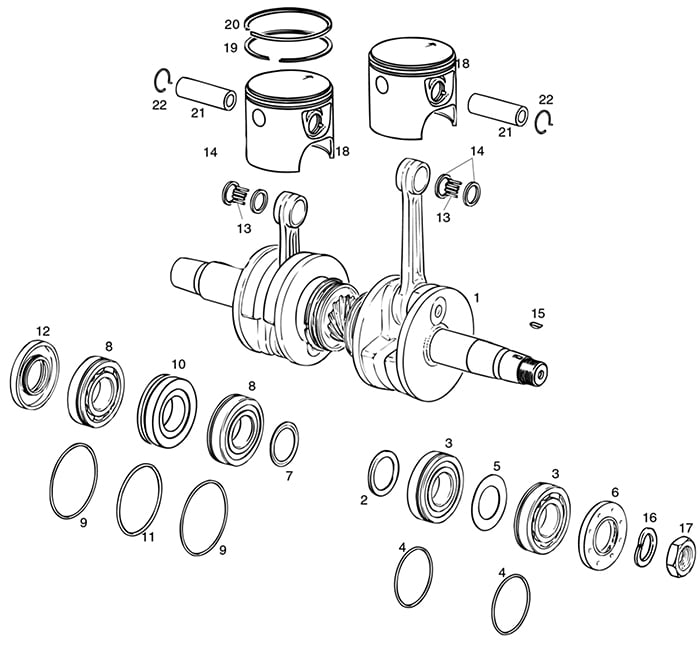 ROTAX 582 UL 99/17 ENGINE CRANKCASE | MAIN BEARINGS | PISTONS PARTS