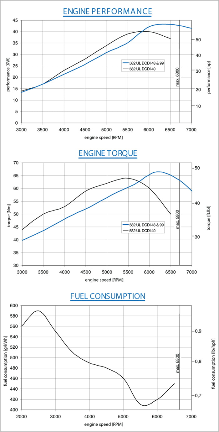 In comparison to the 80 hp version of the Rotax 912 series the 100 hp product line offers more power while keeping the weight. This engine series offers a time between overhauls of 2.000 hrs and the best power to weight ratio in its class – no surprise that this engine is the best selling 4-stroke engine. This series is available as non-certified (Rotax 912 ULS) and certified engine (Rotax 912 S) according to FAR33.