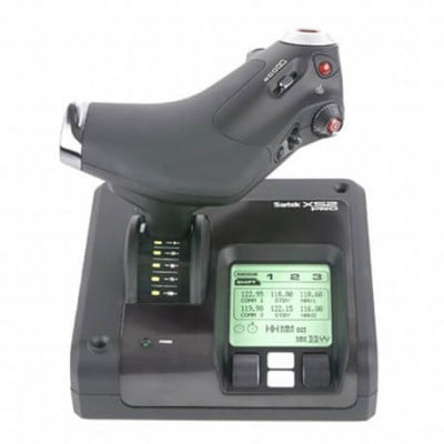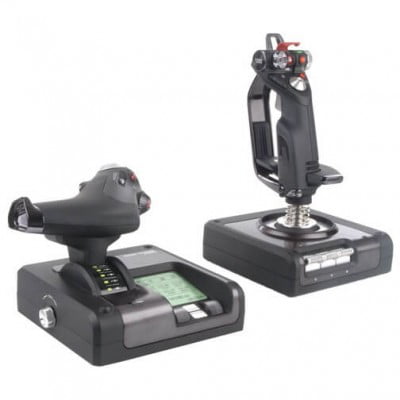 | Saitek’s X52 Pro Flight H.O.T.A.S. System is a fully integrated hands on stick and throttle flight controller that meets or exceeds the demands of the best flight simulator pilots. Featuring an upgraded multifunction LCD which shows in-game data in real time, a progressive throttle with tension adjustment, plus an adjustable joystick with a self-centering mechanism. The X52 Pro takes all the standout features from the original X52 and elevates them to a higher altitude.