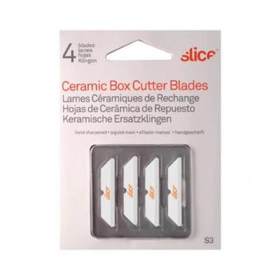 | Rounded-Tip Slice ceramic replacement blades (PACK OF 4), for use only with the Slice ceramic-blade cutters. Each pack contains four (4) double-sided, rounded-tip Slice ceramic blades. Each blade measures approximately 1-5/16″ inches (34mm) in length. Also available in Pointed-Tip. For use exclusively with Slice cutting tools for 12-04574, 12-04575, 12-04576, 12-04577, 12-04578. |