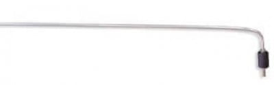 VHF antennas are stainless steel. Insulators are made of Delrin, which resists extreme cold or high temperatures and is non-breakable. Antennas are available in straight and 45° or 90° angles. 118–136 mHz range, Weight: 3 oz., Not FAA approved.