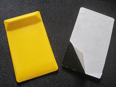 Installation is a snap with the peel-n-place feature, which sticks to asphalt as well as concrete. Vector Chocks come as a complete kit, each kit containing two Vector Chocks and a roll of industrial grade energy yellow safety tape. 10″ Length x 6″ Width |