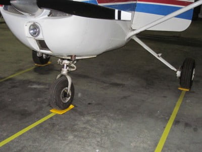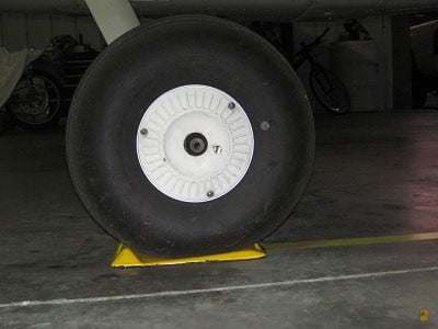 | Hangar rash is the leading cause of ground handling insurance claims. Vector Chocks reduces the chance of hangar rash and will save you a considerable amount of money.Vector Chocks cradle the wheel with their unique ramp design and the energy yellow colored industrial grade safety tape will help guide you from the hangar door to your safe parking place.