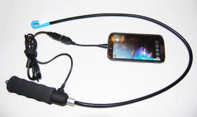 | ViVidia AbleScope VA-800 USB Flexible Inspection Camera Borescope Videoscope with 180° Articulating 8.5mm Diameter Probe. High quality video, ideal for detailed visual inspection in hard-to-reach places with 180° articulation and 8.5mm diameter probe camera. Suitable for airplane and auto engine repair and maintenance. Connecting this borescope to your computer or tablet (optional, sold separately, click for details) via USB port allows you to perform detailed visual inspection in hard-to-reach areas. With the use of OTG cable (included in the package), this USB borescope can also be connected to an Android Smart Phones (such as Samsung). AbleScope.apk is a special APP to users who want to connect the USB Microscope and USB Borescope to the Android Smart Phones without rooting. 180 degree articulating 8.5mm diameter probe offers a panoramic view of the area being inspected. With 0.3M pixels CMOS sensor, and six built-in LEDs for illumination, this product allows you to view images, take standard photos, and record videos. This borescope is designed for the inspection of the carbon residue inside of cylinder especially the surface of the intake valve. It is perfect for ‘looking backside’ after the scope goes into a narrow space. |