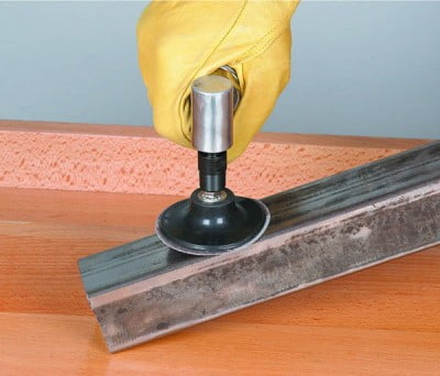 3 in. Disc Holder with 1/4 in. Shank. This flexible disc holder is made of reinforced rubber for a long service life. Twist-lock attachment works with conditioning and sanding discs.